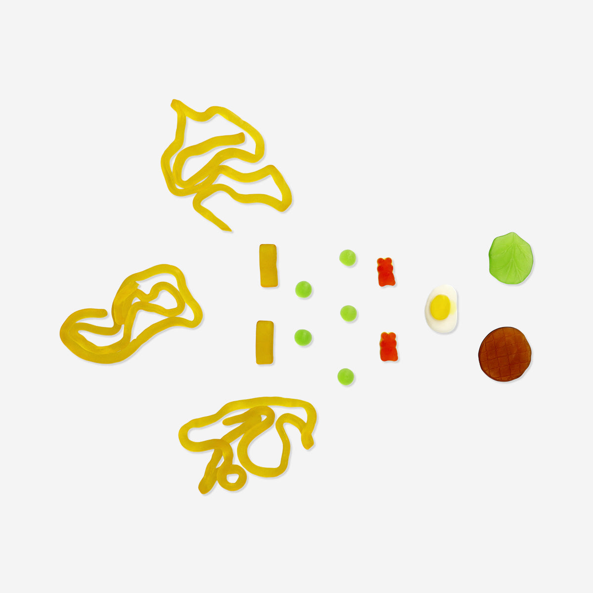 Aggiungi un tocco divertente ai dolci con queste caramelle colorate. Realizzati con un mix di morbide caramelle gommose e gelatine, hanno la forma di una gustosa ciotola di noodles, completa di guarnizioni di caramelle che danno vita al disegno. Ogni pezzo ha un sapore fruttato e una consistenza gommosa che lo rende un piacere da mangiare. Confezionato in una scatola in stile take away con finestra trasparente, è un regalo divertente o uno snack originale per feste a tema e occasioni speciali. Caramelle, creative e piene di gusto, queste tagliatelle sono un modo delizioso per gustare qualcosa di diverso e divertente.